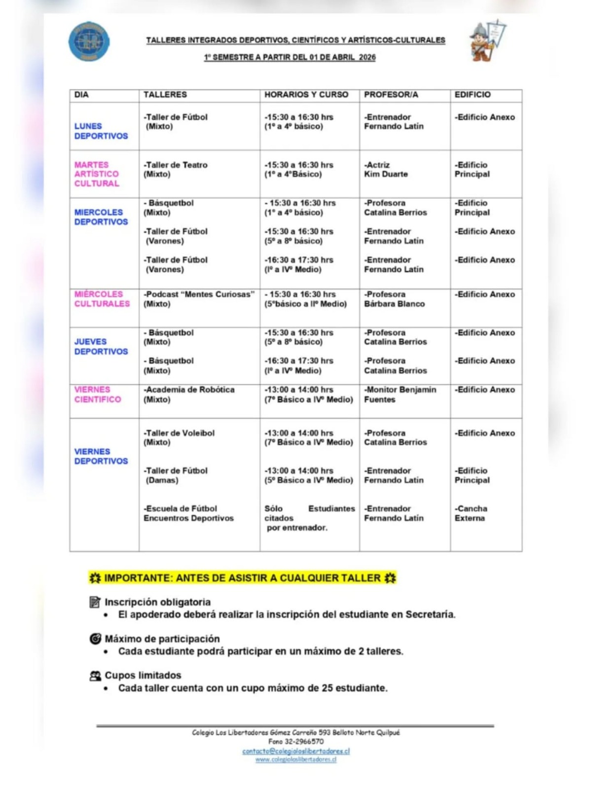 Información importante para apoderados y estudiantes